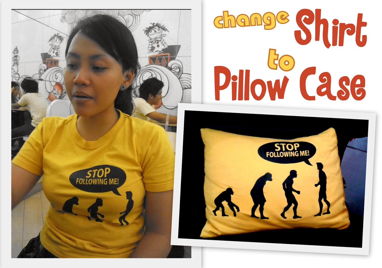 Daripada punya tshirt lama ga kepake alias klo dalam kasus saya sudah ga muat, jadi saya jadikan pillow case alias Sarung bantal..Saya sudah suka sama design tulisan di baju ini jadi sayang aja gitu kalo berakhir jadi lap dapur atau keset. Finally, i found the quick and simple video from youtube.